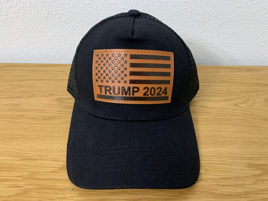 TRUMP 2024 HAT WITH LEATHER PATCH AMERICAN FLAG TRUCKER SNAPBACK HAT
