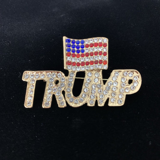 TRUMP AMERICAN FLAG PIN CRYSTAL BROOCH